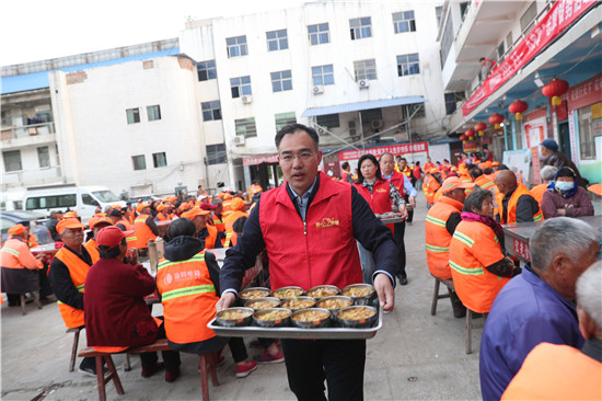 當日早上6時,鄧昌鋒與志愿者早早趕到“愛心粥屋”服務站,一到粥屋便主動加入到忙碌的服務中。鄧昌鋒帶頭給環衛工盛粥、分發饅頭、端菜,志愿者一個個忙得不亦樂乎。待環衛工人用餐完畢,鄧昌鋒與志愿者一起清掃地面、整理桌椅,及時將碗筷清洗干凈。大家雖然有些勞累,但每個人的心里都充滿了愉悅感和幸福感。“沒想到,縣委統戰部給俺送來愛心物資,還請了歌手給我們唱歌,聽著心里暖暖的!”年過六旬的李大嬸吃著飯感謝的話說個不停。