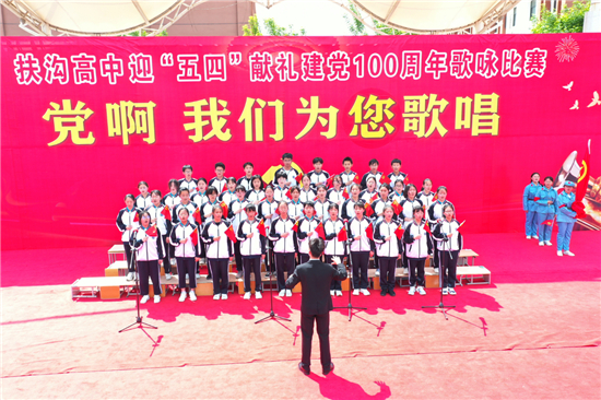 4月29日下午,扶溝高中五四青年節獻禮建黨100周年歌詠比賽在扶溝高中操場舉行。