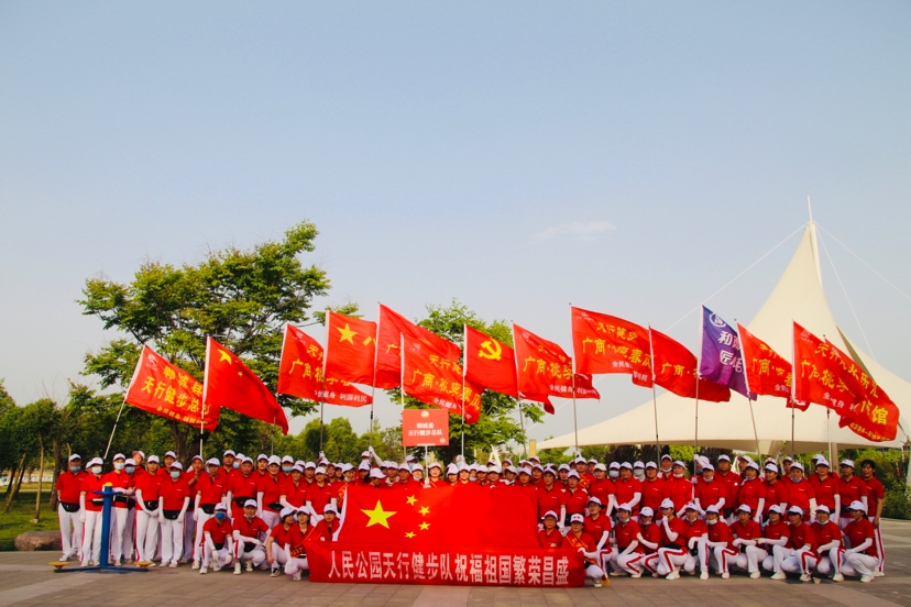 “參加這個健身運動,我們扛著黨旗、國旗,以這種特別的形式慶?!逡弧瘎趧庸潱4蠹覄趧庸澘鞓?。”健步隊員譚玉龍告訴記者。③6