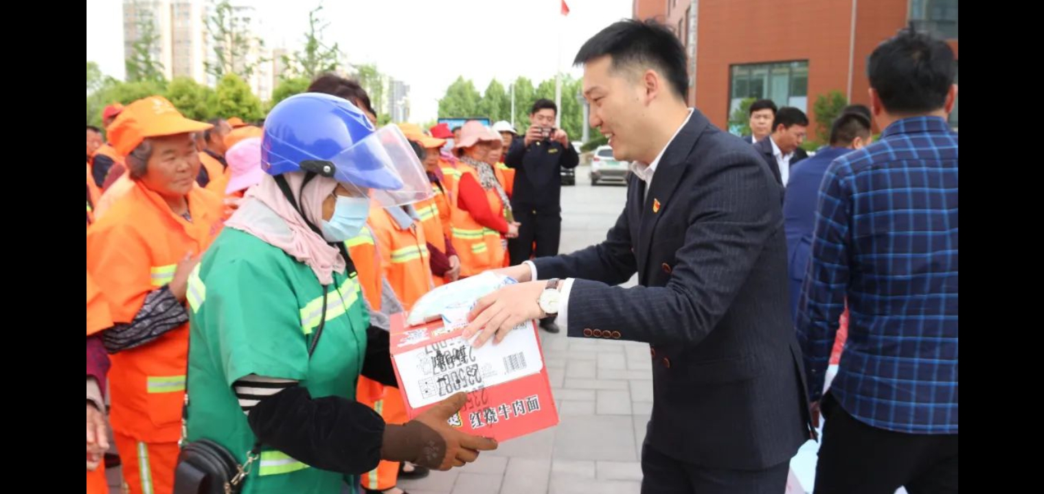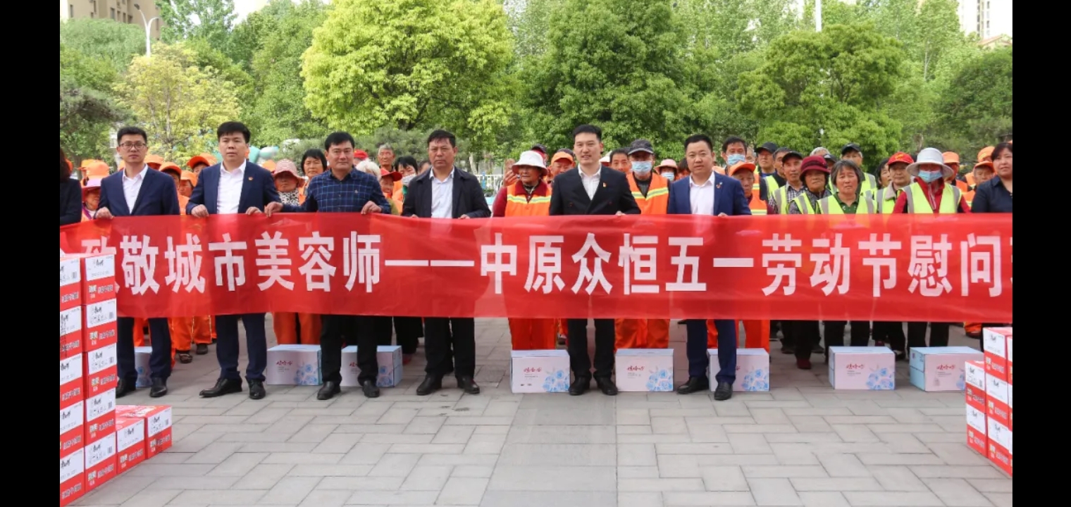 為表達對一線環衛工人的關懷,致敬城市美容師,4月29日,中原眾恒集團在道琚酒店組織開展五一勞動節慰問環衛工人公益活動。市城鄉一體化示范區綜合執法中心副主任張英、王東方,中原眾恒集團董事長王文濤,副總經理謝華、張輝,道琚酒店總經理李陽及示范區100余名環衛工人參加活動。