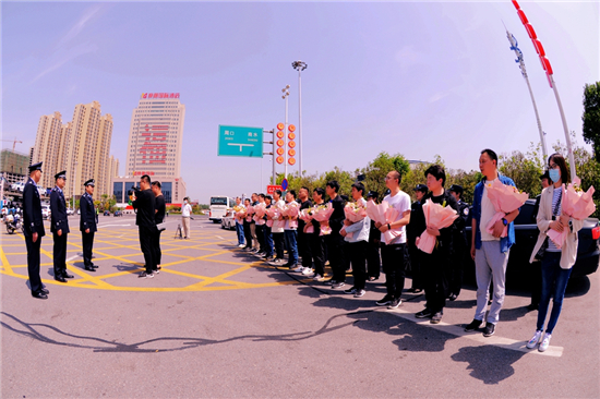 之前的5月1日下午,商水縣公安局15名公安民警輔警奔赴五個省份抓捕詐騙嫌疑人平安歸來,縣公安局同樣在周口高速口舉行歡迎儀式,高規格迎接抓捕組凱旋的勇士。王之棟、張俊華等參加歡迎儀式。