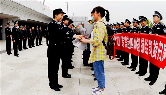 5月3日,一場中雨酣暢淋漓,為各地游客帶來清爽。16時10分,暴雨剛停,在周口東高鐵站,商水縣公安局舉行歡迎儀式,迎接該局“306”專案赴四川抓捕組凱旋。縣政府黨組成員、公安局局長王之棟,政委張俊華帶領縣公安局全體黨委班子成員、機關警種負責人等百余名民警和市民迎接勇士們凱旋歸來。