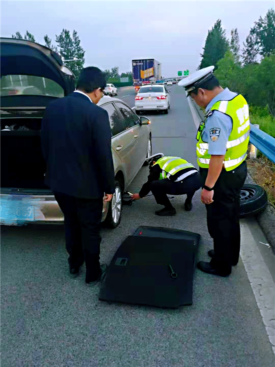 5月2日19時許,市公安局交通管理支隊高速二大隊項城中隊(以下簡稱高速二大隊項城中隊)民警由北往南方向巡邏途中,行駛到2081公里附近西半幅處,發現一輛轎車因車后輪爆胎,被迫停在應急車道,民警隨即幫助該車主更換車載備胎,解決了司機的燃眉之急。
