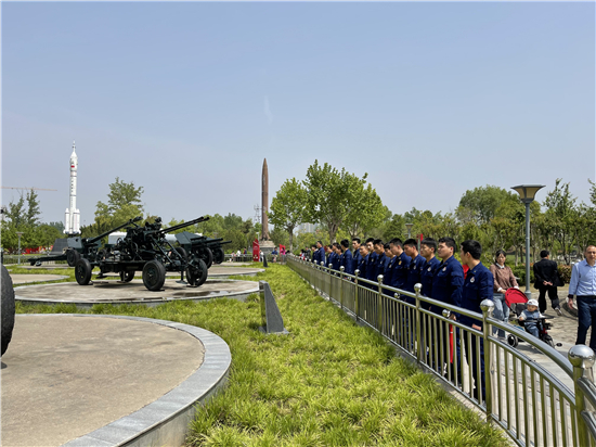 5月4日上午,天氣晴朗。在周口公園,周口市城鄉一體化示范區消防大隊的青年消防隊員們通過跑步訓練等方式慶祝五四青年節。消防隊員欒慶帥告訴記者:“今天是五四青年節,我們通過訓練、參觀國防設施這樣的方式,來表達我們的愛國熱情。”②9