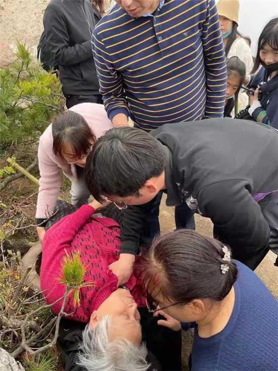 大河網訊 5月3日13點35分左右,周口市兒童醫院醫生趙一品在游覽洛陽白云山景區的途中,遇到一位突發疾病暈倒的老太太。聽到家屬呼救,趙一品迅速來到暈倒的老太太身邊,協助家屬清理了老太太口中的食物殘渣,讓病人平躺等待救援。