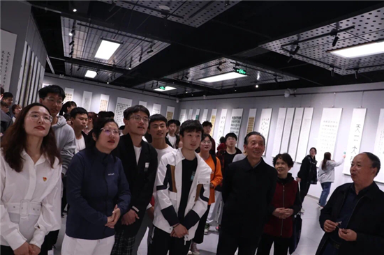 觀看過程中,離退休工作處理科支部四位老教師為同學們認真講解每幅書法作品的來源和深義,將美育與黨史學習教育充分結合,以書法為媒向在場學生展開愛國主義教育、理想信念教育和革命傳統教育。