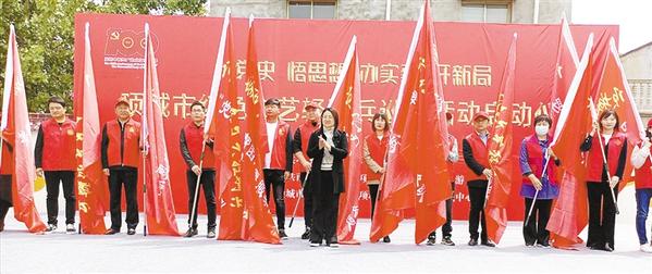 4月27日,由項城市委宣傳部主辦的“學黨史 悟思想 辦實事 開新局——項城市紅色文化輕騎兵巡講活動啟動儀式”在南頓鎮水牛劉村舉行。市委常委、宣傳部長劉娟出席啟動儀式,來自全市14支紅色文藝輕騎兵小分隊140人參加了活動。 記者 楊光林 通訊員李高華 攝