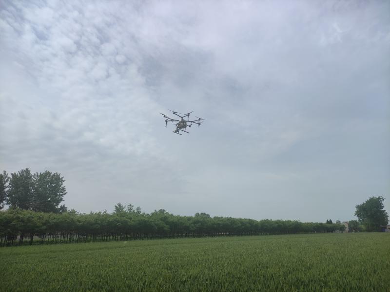 無人機植保可實現農藥自動定量、精準控制、低量噴灑,增加農藥對農作物的穿透性,農藥使用效率大幅提升,同時也減少了農藥對土壤和環境的污染,有效實現“雙降” 。公司工作人員與項城市農業農村局植保站經過協調溝通,調用了無人機進行補噴,助力該合作社2021 年小麥“一噴三防”全面覆蓋工作完成。此舉得到了鄉鎮政府和種植戶一致好評。