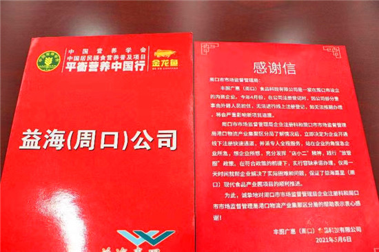 5月7日下午,一封來自豐廚廣惠(周口)食品科技有限公司的感謝信被送到周口市市場監管局港區分局,信中通過飽含真情的言辭,道出了港區“政企一家親”深情厚誼。