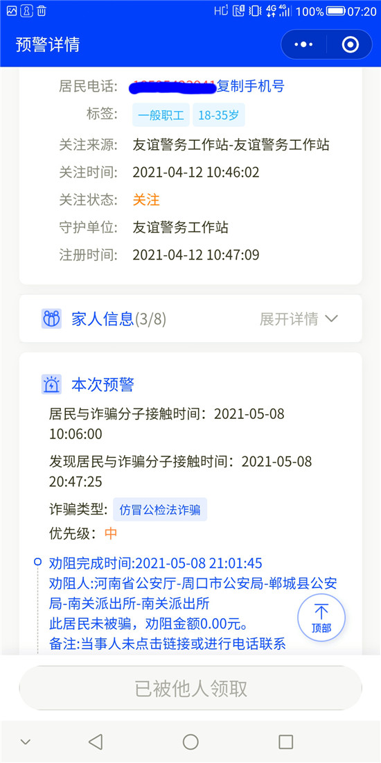 截至目前,洺南街道“金鐘罩”反詐預警系統注冊人數達21929人,受保護居民29547人,成功勸阻155人次免受電信網絡詐騙,取得了良好的社會效果。①9