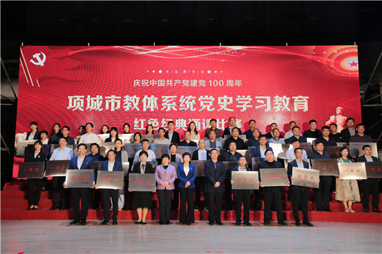 為慶祝建黨100周年,深入貫徹習近平新時代中國特色社會主義思想,詮釋中華優秀傳統文化內涵,彰顯中華語言文化魅力,5月7日至8日,由項城市委宣傳部、共青團項城市委主辦,項城市教育體育局、項城市新華書店承辦的項城市教體系統黨史學習教育紅色經典誦讀比賽在項城市人民會堂舉行。項城市人大常委會副主任張春志,市政府副市長張愛玲,市政協副主席熊向華,市教體局黨組書記、局長陳敏出席活動。