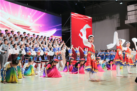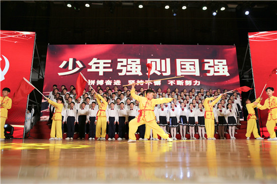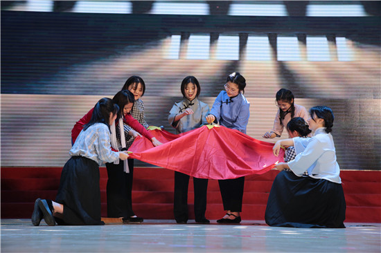 《百年紅船》大氣磅礴,展現了“崢嶸歲月、風雨兼程,敢闖敢領、百折不撓”的歷史畫卷;《千里躍進大別山》將誦讀與雜技融合,講述了解放戰爭中這一個偉大轉折的波瀾壯闊;《愛國三問》振聾發聵,激發了大家為實現中華民族偉大復興作出新貢獻的熱情;《繡紅旗》催人淚下,演繹了革命烈士為了新中國成立出生入死,前赴后繼的斗爭精神;《青春中國》《頌百年芳華、奏強國樂章》《獻給黨的贊歌》等,高亢激昂的誦讀聲和歌聲,青春洋溢的優雅舞姿,抒發著廣大青少年對偉大祖國和中國共產黨的無比熱愛之情,精彩的演出贏得場下觀眾陣陣掌聲。