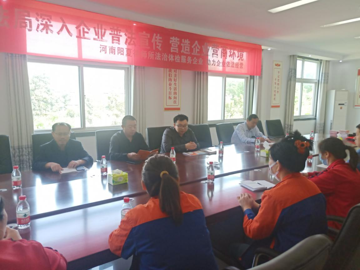 為進一步提升企業依法經營能力,優化企業營商環境,5月8日,太康縣司法局副局長袁忠玉帶領縣司法局工作人員和河南陽夏律師事務所執業律師先后到河南通泰紡織有限公司、河南省四通鍋爐有限公司等企業開展法治宣傳、法律服務活動。