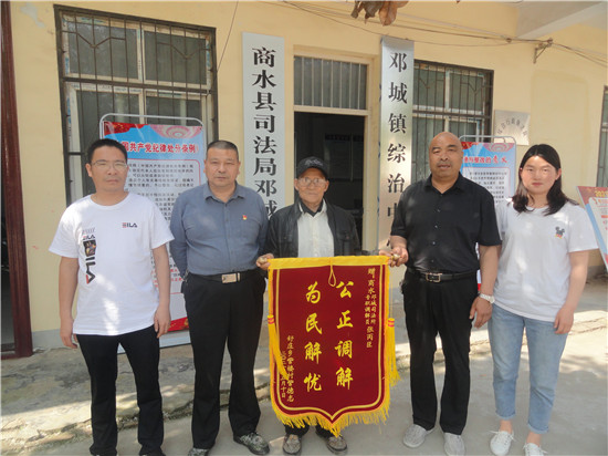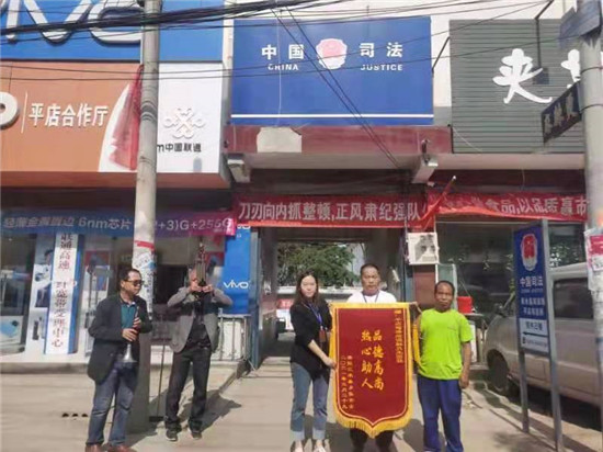 5月10日10時(shí),商水縣司法局平店司法所院內(nèi)嗩吶聲聲,一名中年男子將一面題有“品德高尚 熱心助人”字樣的錦旗送到司法所長(zhǎng)劉靜靜和專職調(diào)解員王國(guó)勝的手中,并再三表示感謝。這名送錦旗的中年男子名叫雷得令,淮陽(yáng)區(qū)朱集鄉(xiāng)大雷樓村人。雷得令為什么給平店司法所送錦旗呢?事情的起因是這樣的: