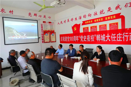 在村委會,劉偉同志用通俗易懂的講解形式,接地氣的樸實語言,從黨史教育要堅持與基層組織建設相結合、與黨員作用的發揮相結合、與大任莊鄉村振興相結合三個方面,面對面向村兩委班子和黨員代表宣講中國共產黨的初心使命、中國特色社會主義事業的光輝歷程。