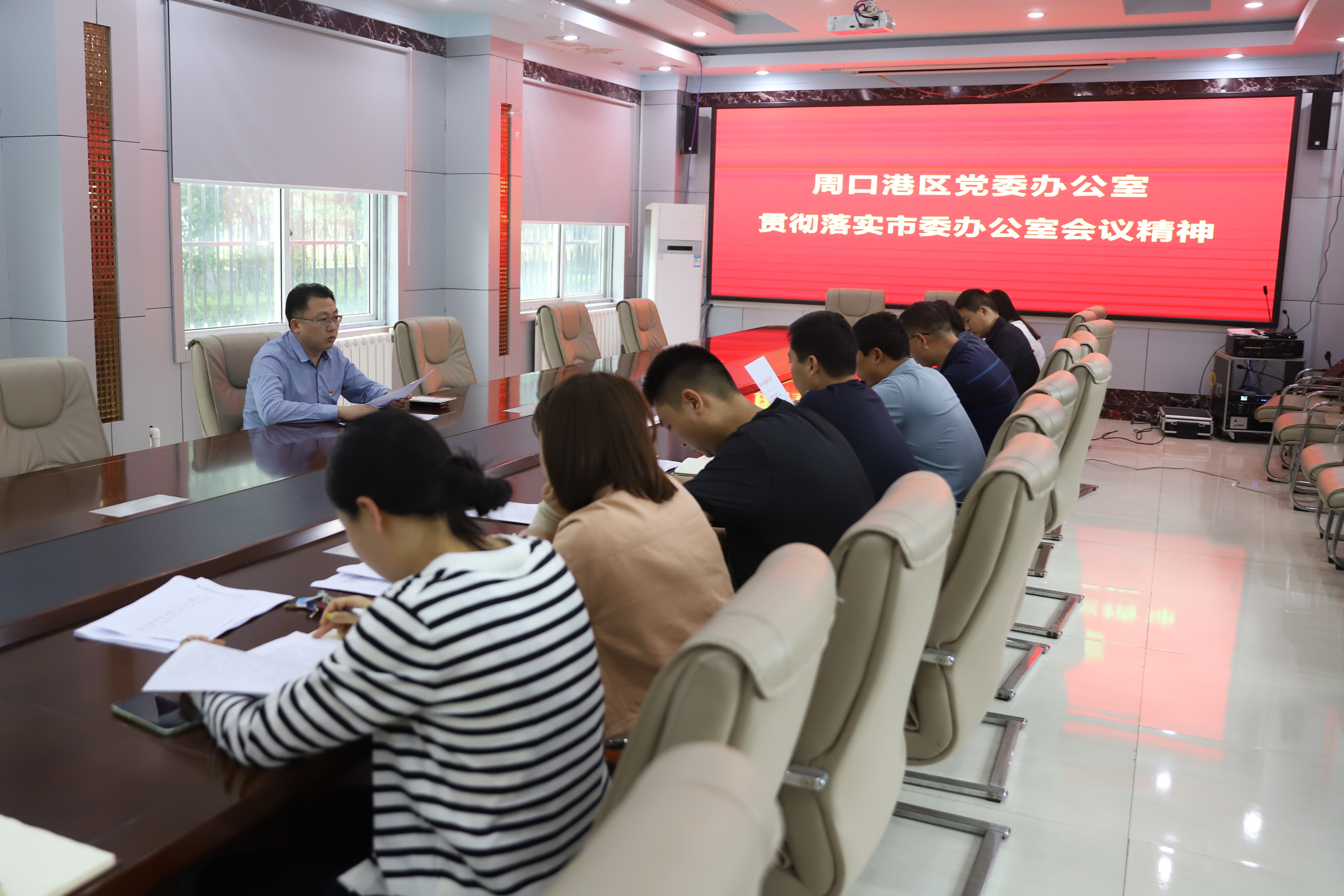 港區黨委辦公室主任耿峰對全體黨員干部提出四點工作要求:一是提高思想認識。始終堅持“黨辦姓黨”,把對黨絕對忠誠作為一切工作的首要政治原則且貫穿于工作始終;進一步準確把握新時代黨辦工作新要求,深化“四個品牌”創建,堅持當好黨委的“堅強前哨”和“鞏固后院”。二是加強業務學習。圍繞工作重心,樹立本領恐慌的憂患意識,強化增強本領的緊迫感,不斷掌握新知識、熟悉新領域、開拓新視野。把提高文字寫作能力作為核心業務,組織文字寫作培訓班,補短板、強弱項、固優勢,持續提升文字寫作能力。三是強化作風保障。持續推動黨委辦公室黨員干部作風根本轉變,在作風建設上走在前、作表率,嚴守政治紀律,樹立規矩意識,重視機要保密,堅決反對形式主義、官僚主義,嚴格落實勤儉節約、反對浪費的工作要求。四是提升服務水平。牢固樹立“服務也是形象”“服務也是生產力”意識,充分發揮黨委辦公室牽頭作用,加強各方面的聯絡和協調,強化辦公室工作分工和值班的督促檢查通報,不斷提升黨委辦公室系統工作水平,為港區快速發展貢獻新的力量。