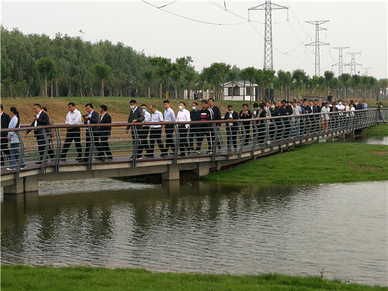 魚翔淺底、水岸沙洲、層林盡染、果香滿園........在流沙河魚翔湖節點工程,沈丘縣市人大代表漫步園路步道,映入眼簾的是親水棧道與綠水景觀、碧波湖水,呈現出一片恬淡悠然的生態湖之美、一體化城市生態之美。眼前如詩如畫的美景讓代表們感慨萬千,大干快上的周口更讓代表們感嘆不已。隨后,代表們先后來到中州大道橋南綠化工程、中原路跨沙潁河橋梁工程、沙潁河城區段治理二期北岸工程、洼沖溝水系和引黃調蓄工程、流沙河治理工程、芙蓉湖城市公園建設工程等地進行了實地觀摩。每到一處,代表們都認真聽取有關介紹,詳細了解項目建設情況和功能定位,紛紛為周口中心城區的新變化點贊。
