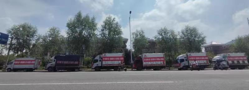 23日凌晨,車隊抵達鄭州,按接頭人的安排,在指點的地點,卸下300箱營養快線、300箱碗面和300箱礦泉水,按預定計劃去西華運送物資。抵達西華已是中午,匆匆卸掉600多箱物資,就急忙趕到周口中心城區和鹿邑武裝部,與赴周救援的民兵隊伍匯合。這次在周口中心城區連卸貨的時間都沒有,也不留個司機,就把一輛車連車帶貨都留給了民兵,李武漢帶著人馬驅著四輛車就往鶴壁而來。