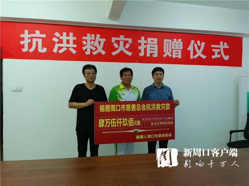 7月31日上午,市游泳協(xié)會(huì)通過市慈善總會(huì)定向捐贈(zèng)川匯區(qū)防汛搶險(xiǎn)款4.59萬(wàn)元。