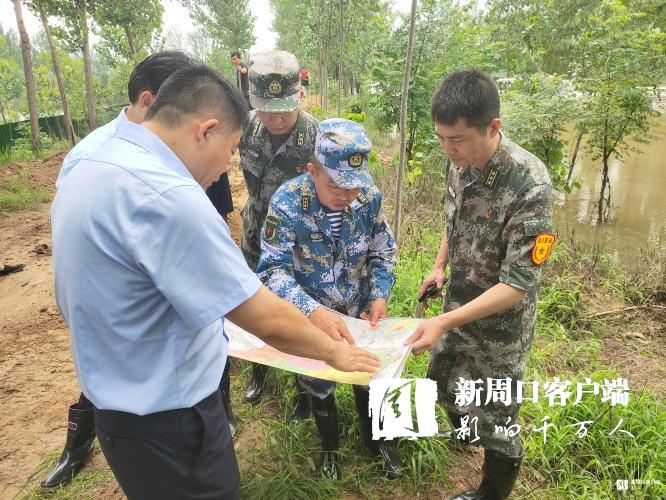 這一夜,周口軍分區防汛指揮部里燈火通明。司令員湯維政、政委車曉輝深入研判防汛抗洪形勢任務,根據地方政府和受災群眾的現實需要,未雨綢繆、科學排兵布陣,提前調兵遣將。