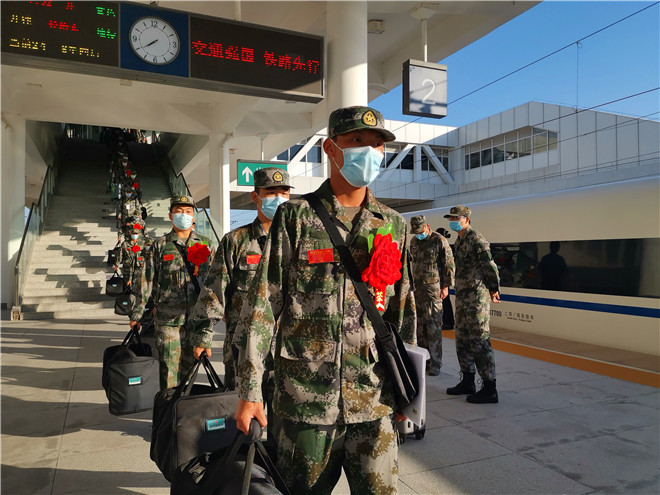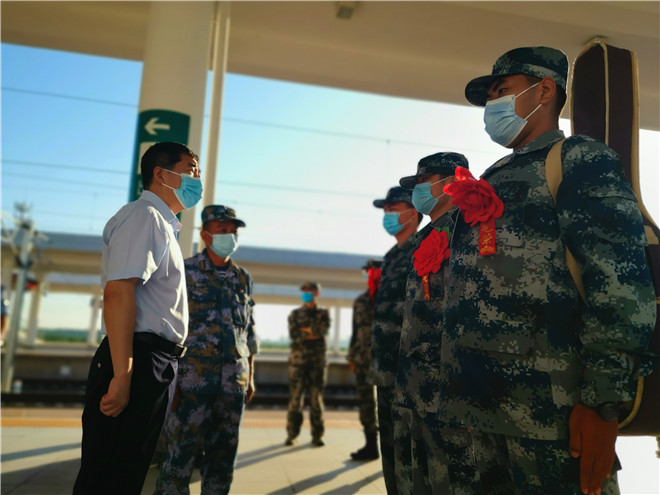 披紅綬帶,胸佩光榮花。候車大廳內(nèi),經(jīng)過役前訓(xùn)練的新兵們已經(jīng)有了“兵樣子”,站姿挺拔,整齊列隊,戎裝待發(fā)。根據(jù)疫情防控要求,不再集中舉行送行送兵,新兵們將分批次從周口出發(fā),開啟他們的軍旅新征程。湯維政、張元明對入伍新兵表示祝賀,對他們積極響應(yīng)祖國召喚,踴躍報名參軍,以實際行動依法履行服兵役義務(wù)表示贊揚。同時希望他們到部隊后,迅速投入新的生活,時刻嚴格要求自己,珍惜青春、安心服役,加強學(xué)習(xí)鍛煉,爭當周口好兵,嚴守部隊紀律,苦練過硬本領(lǐng),努力把自己鍛煉成有靈魂、有本事、有血性、有品德的新一代革命軍人。