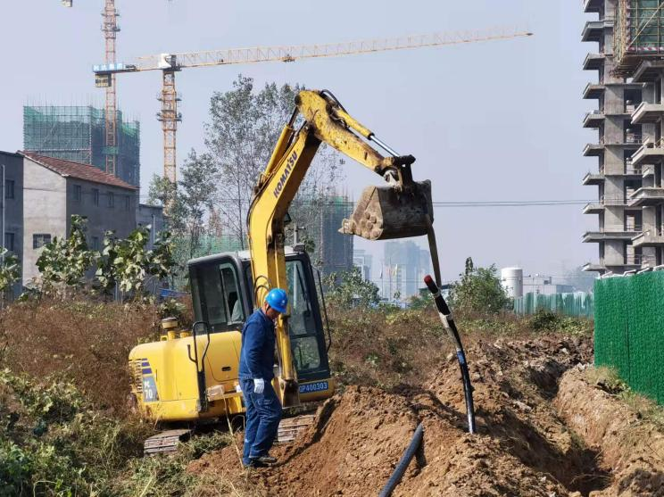當日,記者來到正商瓏湖寬境項目工地,看到周口龍潤電力(集團)有限公司淮陽分公司工作人員在緊張施工。在施工現場,龍潤公司項目負責人侯思遠說:“公司接到營商辦交辦的反映件后,公司領導非常重視,迅速召開會議,拿出了解決方案。今天雖然是周六,公司仍然出動鉤機2輛,其他施工車輛4輛,用最快的速度加緊施工,預計兩天內可以完工。”