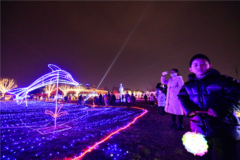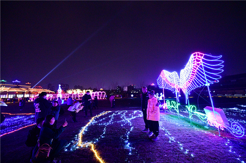 元宵節,鬧花燈。2月11日晚,記者來到周口中心城區沙潁河北岸建業關帝老街、作坊街,以及八一大道一峰夢想城等地,看到不少商家已在門前掛上各式燈籠,附近也布設了各種花燈造型,迎接即將來臨的傳統節日——元宵節。許多市民走出家門,到這些地方賞燈游玩。周口日報·周道客戶端記者梁照曾 攝③2