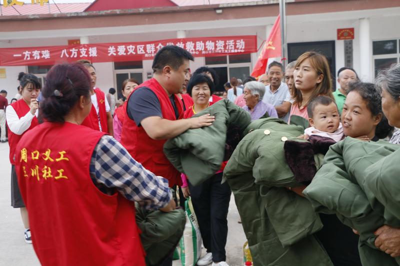 去年7月底,面對(duì)來(lái)勢(shì)洶洶的雨情汛情,三川社工迅速反應(yīng),立即組建了由60名社工、義工組成的防汛救災(zāi)突擊隊(duì),連續(xù)10天在賈魯河沿岸3個(gè)村莊和二板橋段開(kāi)展防汛值守;組織40名社工、義工裝卸防汛救災(zāi)物資,向川匯區(qū)、西華縣、扶溝縣30多個(gè)防汛值守點(diǎn)和居民安置點(diǎn)運(yùn)送食物和救災(zāi)物資。