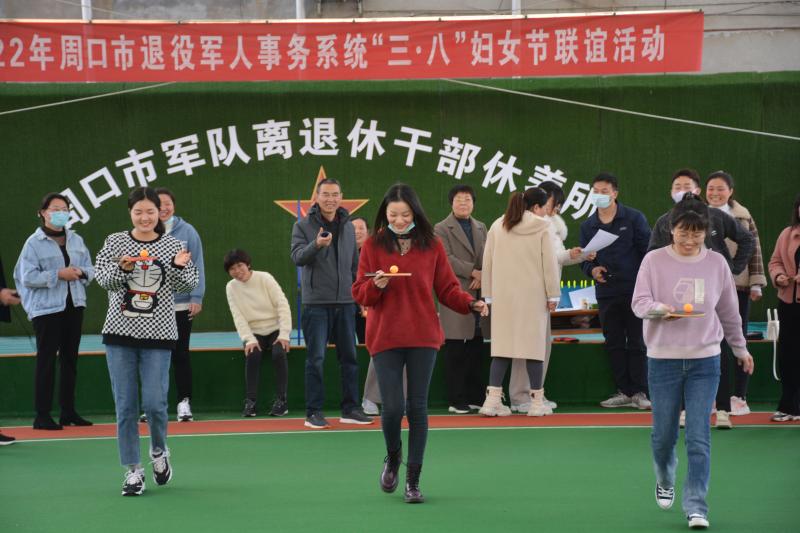 3月7日下午,周口市軍干所邀請市退役軍人事務局全體女職工,組織開展慶祝“三八”國際勞動婦女節聯誼活動并送上慰問品。跳繩、托乒乓球、拔河、羽毛球4項友誼賽讓女同胞們樂在其中。③3記者 彭慧 通訊員 王曉會 攝