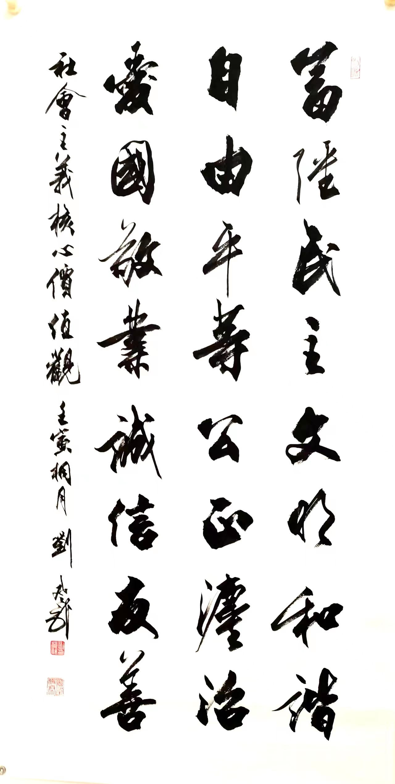 劉登龍 中國書法家協(xié)會會員,周口市書法家協(xié)會終身名譽主席(社會主義核心價值觀)