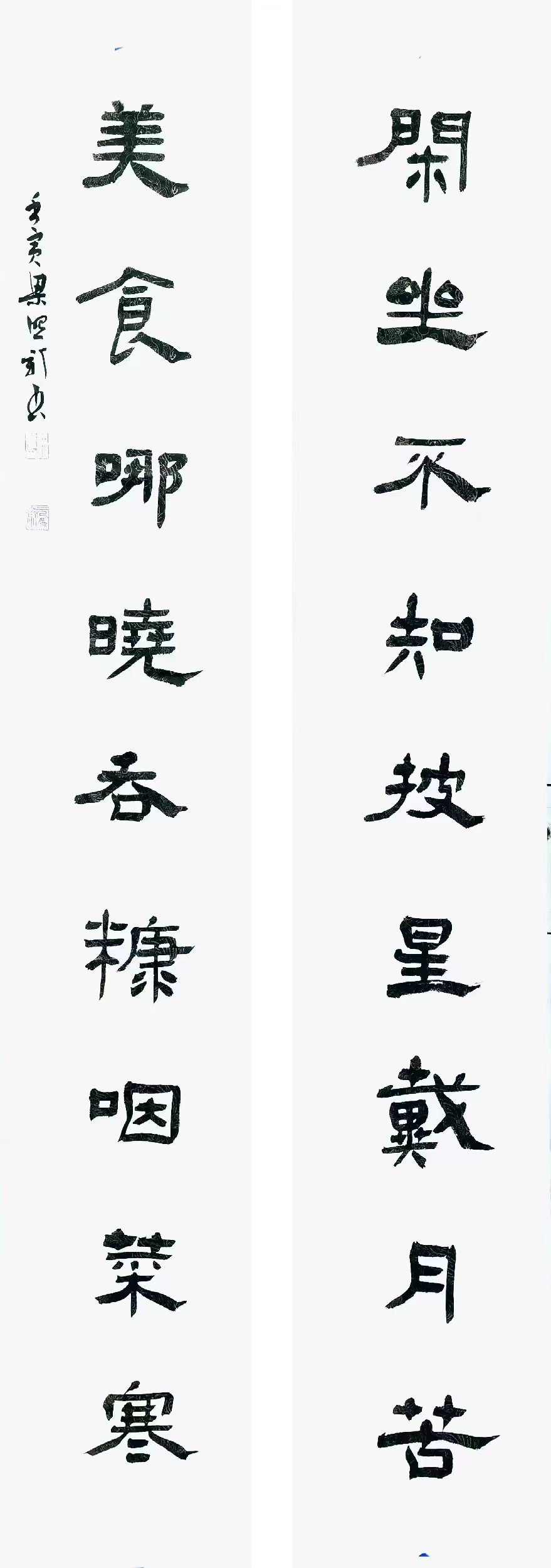 梁照新 中國書法家協會會員,河南省隸書委員會委員,周口市書法家協會副主席(對聯:閑坐不知披星戴月苦 美食哪曉吞糠咽菜寒)