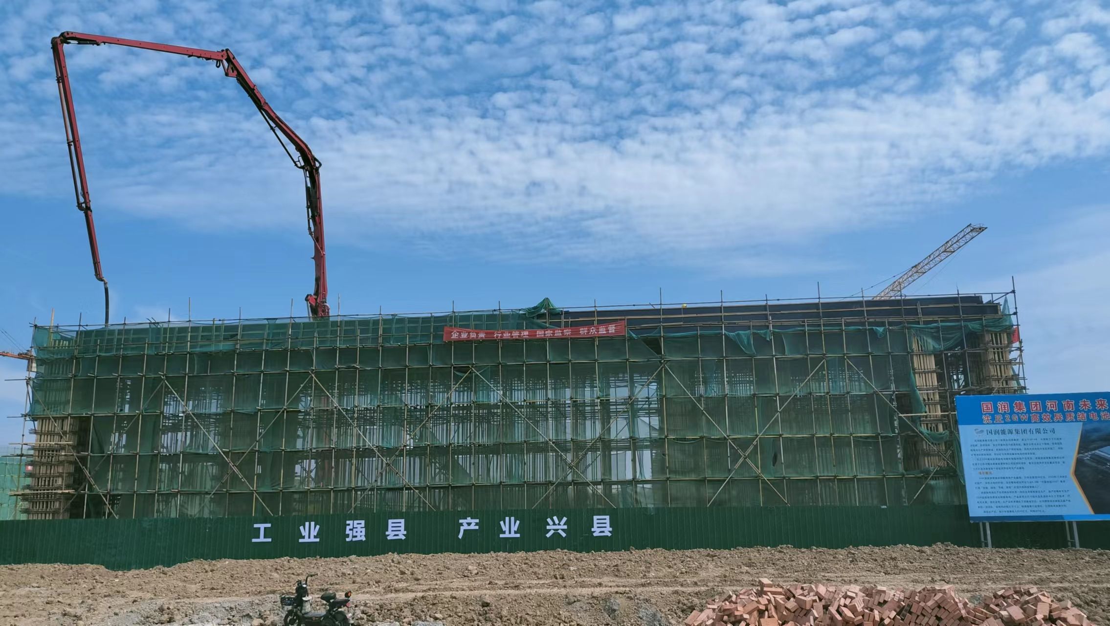 離開標準化廠房建設工地,記者又來到位于沈丘縣現代科技產業園內的河南未來新能源沈丘2GW高效異質結(HJT)電池綠色智能制造項目工地,那里也是塔吊林立,一片繁忙景象。高端電池生產車間正在緊張施工中,一臺灌漿機正在澆筑房頂。項目部負責人張旭輝說:“正在建設的是高端太陽能芯片生產車間主廠房面積2.41萬平方米,鋼架5200平方米,10月底完工,11月份安裝設備。”