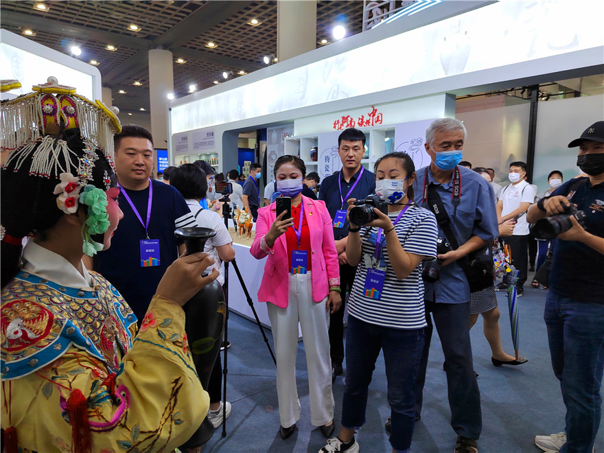 中國非物質(zhì)文化遺產(chǎn)博覽會,每兩年舉辦一屆,是非遺領(lǐng)域的全國性重要品牌活動,已成為展示非遺保護(hù)成果、宣傳非遺保護(hù)理念、引領(lǐng)非遺保護(hù)工作的重要平臺。本屆非物質(zhì)文化遺產(chǎn)博覽會為期5天,河南省有16個(gè)非遺項(xiàng)目、4個(gè)非遺美食企業(yè)參展,布置在文化底蘊(yùn)深厚的“行走河南·讀懂中國”展區(qū)。淮陽黑陶、仰韶彩陶、唐三彩、魯山窯、汝瓷、鈞瓷、登封窯、當(dāng)陽峪絞胎瓷、澄泥硯、浚縣泥咕咕燒制技藝在展廳一一亮相。淮陽黑陶燒制技藝省級傳承人張輝攜帶的部分作品以大氣、精美的文化底蘊(yùn)深深吸引著人們觀賞,各派非遺戲曲傳人也紛紛捧起他的黑陶作品展示中原古老的黑陶藝術(shù)文化。②15