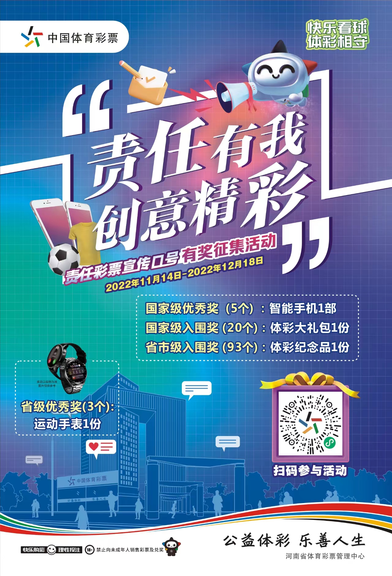 活動形式:參與者通過“中國體育彩票”小程序、APP或者微信號,點擊責任彩票口號征集頁面,完成相關個人信息登錄后,即可參與口號征集活動。
