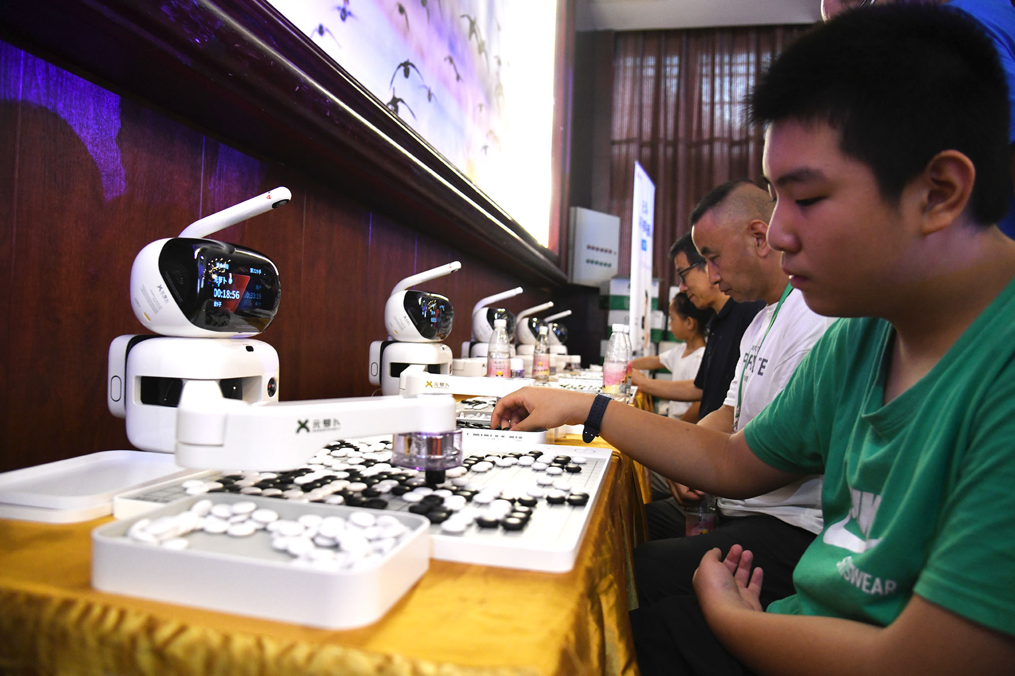 ?8月15日上午,圍棋棋手們在賽事間隙,和機器人對弈,增添不少樂趣。在2023中國淮陽第二屆“荷花杯”全國業余圍棋公開賽的賽場邊,賽事方特意擺放五部圍棋機器人,供棋手們在賽事之余娛樂。工作人員介紹,這些圍棋機器人很強大,不上網聯機的情況下,它們具有業余圍棋三段水平,如果上網聯機,則具有職業九段能力,人機大戰,棋手們未必能贏了機器人。