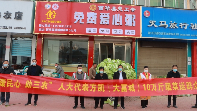 “中國好人”、周口市人大代表方凱幫助黃橋鄉(xiāng)菜農(nóng)解決蔬菜滯銷難題,并通過西華縣紅十字會向這些單位捐贈10萬斤蔬菜,讓滯銷菜變“暖心菜”。方凱的這一舉動,受到群眾的稱贊。