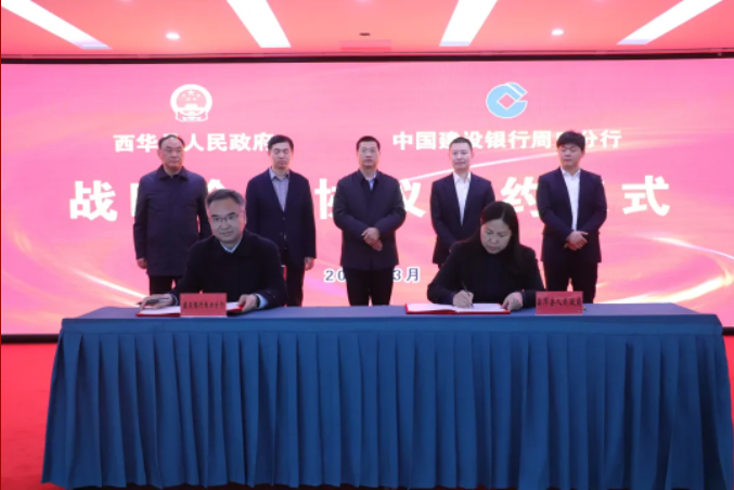 胡偉中副行長代表建行周口分行與西華縣政府簽訂戰略合作協議