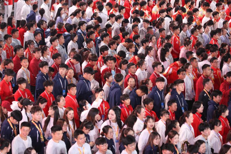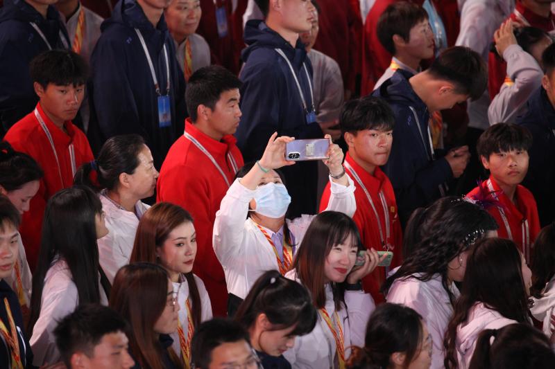 閉幕式上,來自全省各地的運動員用手機(jī)記錄下精彩瞬間。記者 劉俊濤 攝