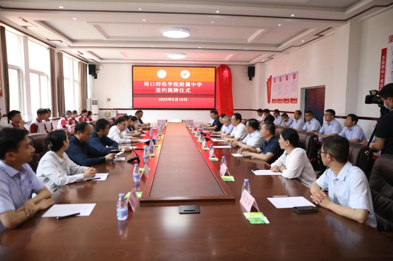 5月19日,周口師范學院附屬中學簽約揭牌儀式在文昌中學舉行,這是市城鄉(xiāng)一體化示范區(qū)與周口師范學院在基礎(chǔ)教育領(lǐng)域的深度合作,標志區(qū)校合作開啟新的篇章,對推動示范區(qū)教育優(yōu)質(zhì)均衡和促進經(jīng)濟社會發(fā)展意義深遠。