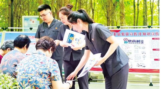 6月15日,項城市在北公園舉行以“守住錢袋子·護好幸福家”為主題的2023年防范非法集資宣傳月活動,副市長戶超品走進現場,與群眾一起了解如何進行識別非法集資常見的一些“套路”。