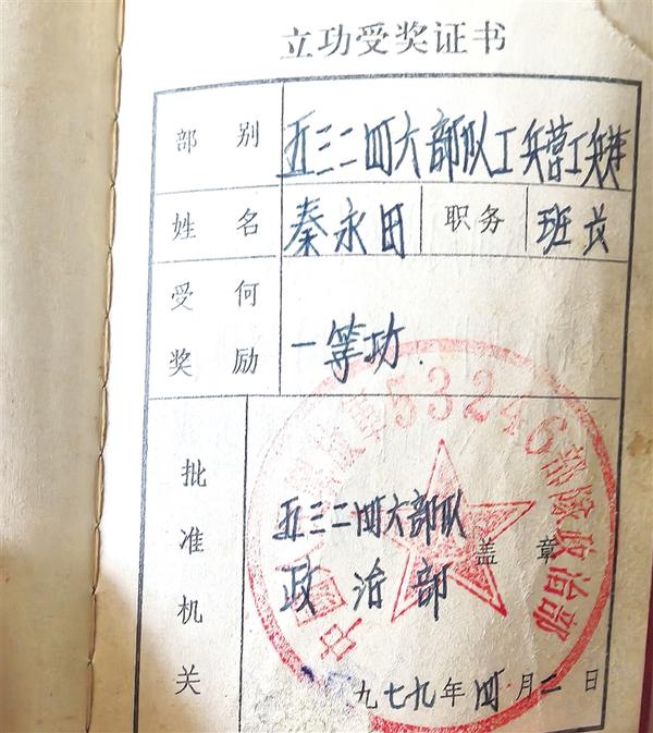談及應征入伍的往事,這里還有一個小插曲。“1974年年底,在縣武裝部組織的一次學習培訓期間,我在院子里撿到一張參軍報名表,便毫不猶豫地填寫好交了上去。”秦永田告訴記者,后來,在村干部的幫助下,他順利通過入伍前的體檢和政審,如愿成為一名新兵,年僅19歲。