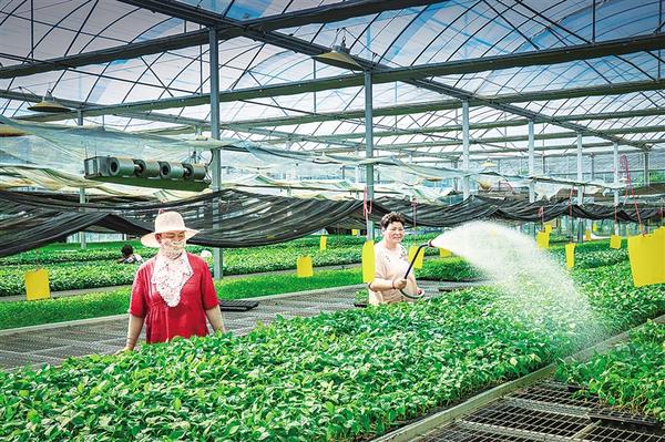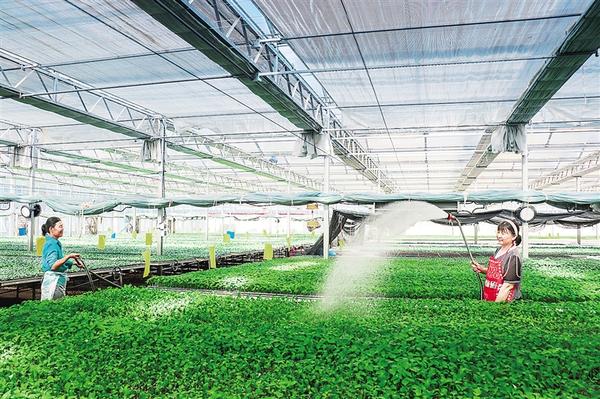 連日來,河南農業大學扶溝蔬菜研究院的工作人員多次為蔬菜種苗噴水降溫。為降低高溫對蔬菜種苗造成的不利影響,該院采取多種措施為大棚降溫,保證蔬菜種苗健康成長。谷志方 攝