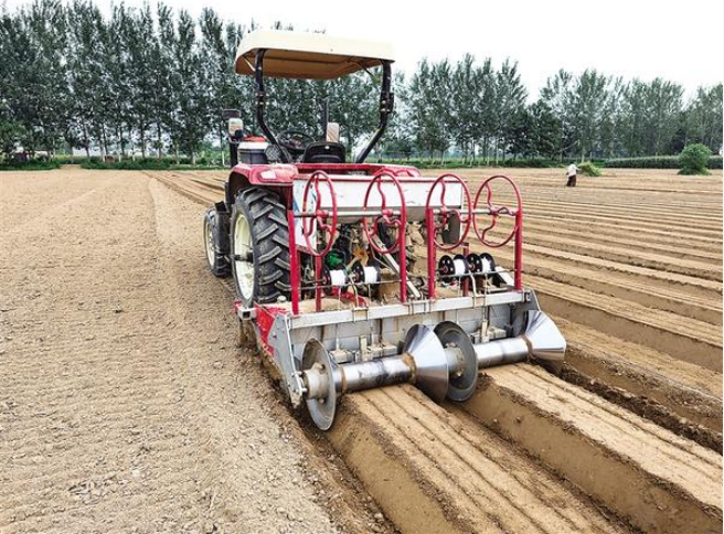 9月4日,在淮陽區臨蔡鎮吳金鋒家庭農場種植基地,一臺集旋耕、施肥、起壟、播種于一體的北斗導航農業機械正在播種蘿卜。據了解,使用這種設備播種,可大幅提高播種效率。記者 付永奇 攝