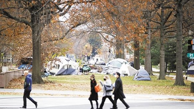 12月8日,在美國華盛頓,行人經過無家可歸者居住的帳篷。……[詳細]