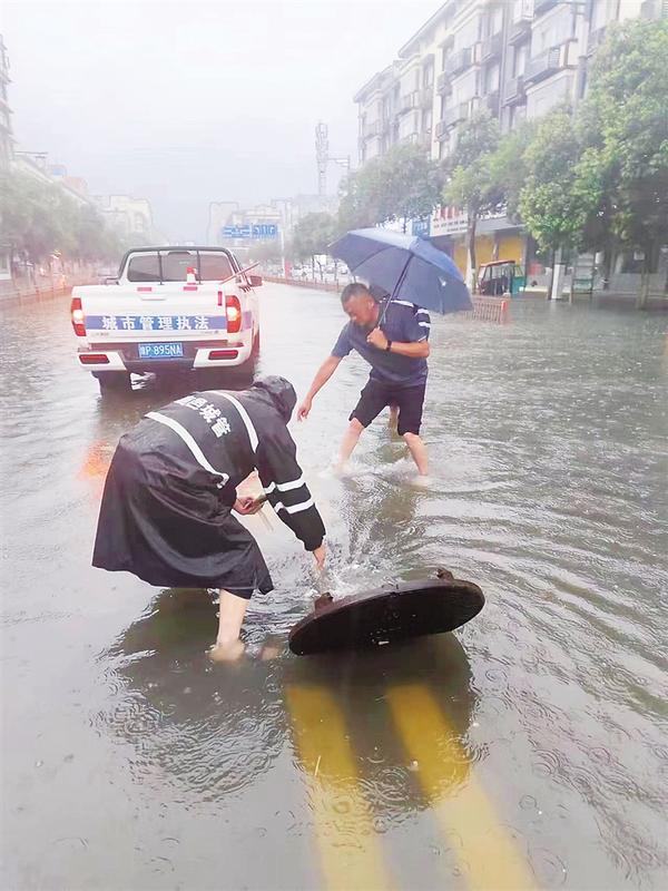 7月15日、16日,鹿邑遭遇強降雨天氣,城管部門組織人員冒雨堅守在縣城12個積水點,打開窨井蓋促排水(圖二),幫助群眾推車(圖三),對積水嚴重區域進行抽排作業(圖一),以實際行動踐行了“為人民管理城市、做人民滿意城管”的使命擔當。 ...[詳細]