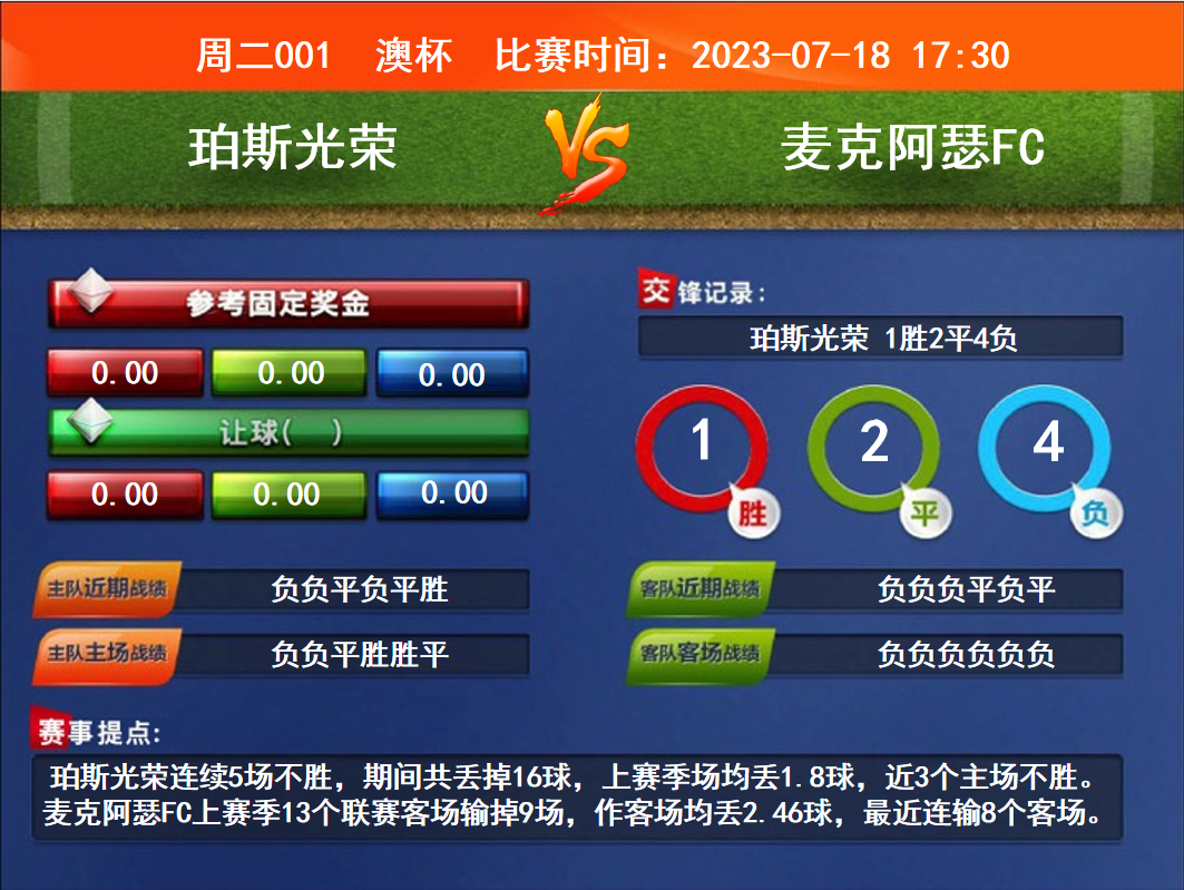 周二競彩足球強檔:珀斯主場萎靡 貝雷達比占據主動