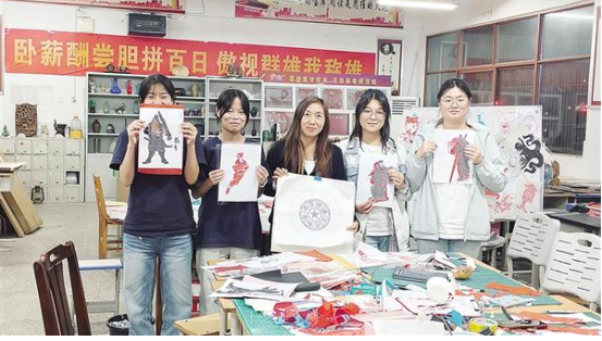 9月26日,淮陽中學的藝術教室里,王海英正指導學生剪紙。
