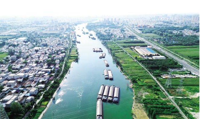 8月22日下午,沈丘縣城東側(cè)沙潁河段,貨船鱗次櫛比,或停靠航道邊歇息,或開足馬力前行。