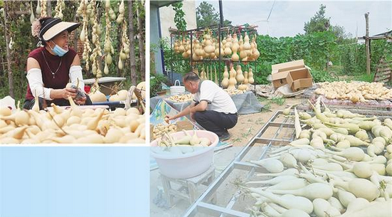 8月13日,在鹿邑縣高集鄉王屯村,村民正忙著清洗、晾曬文玩葫蘆,形態各異的葫蘆經過精加工后身價倍增。