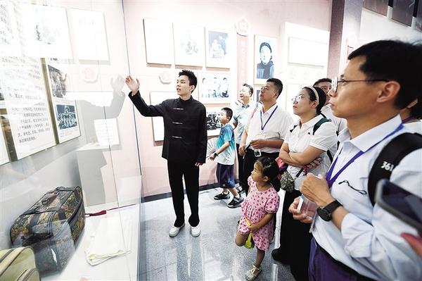 7月20日,講解員在介紹申鳳梅大師生平。當日是著名越調表演藝術家申鳳梅逝世30周年紀念日,不少市民、戲迷來到新建成、開放的申鳳梅越調藝術館,感受大師光輝一生,追尋越調藝術數百年的發展足跡。